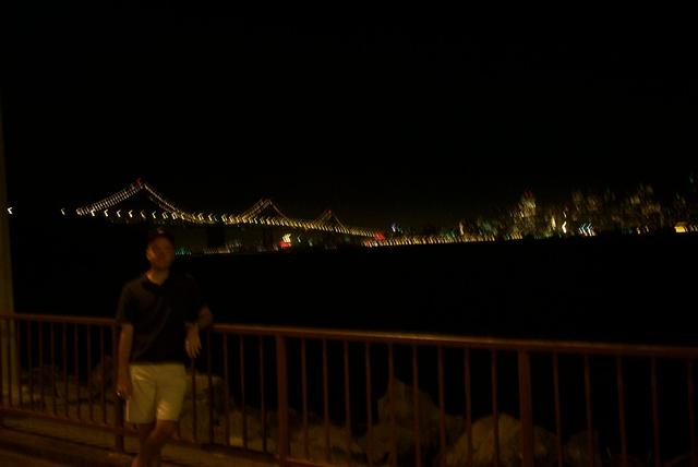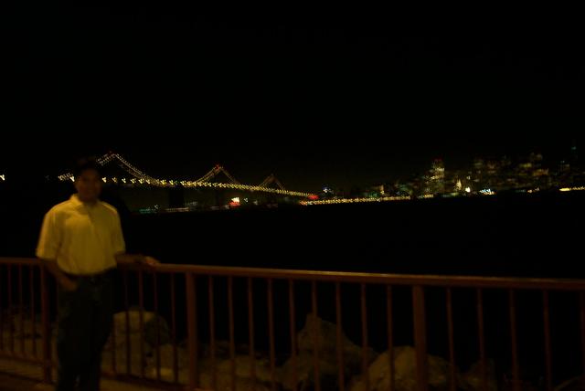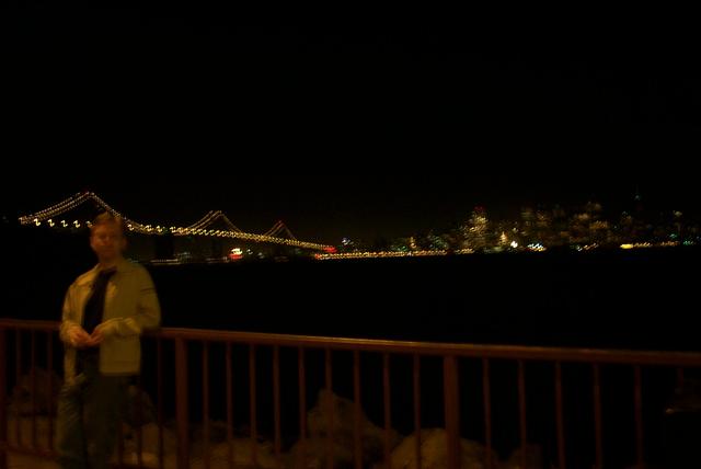 We ate at a Chinese restaurant and had a great dinner. We did a little shopping and then it was off to the Bay Bridge. We got a few shots of downtown from Treasure Island at night. The shots are a little strange. If the flash was on you couldn't see downtown, if it was off everything was blurry. Here they are anyway.