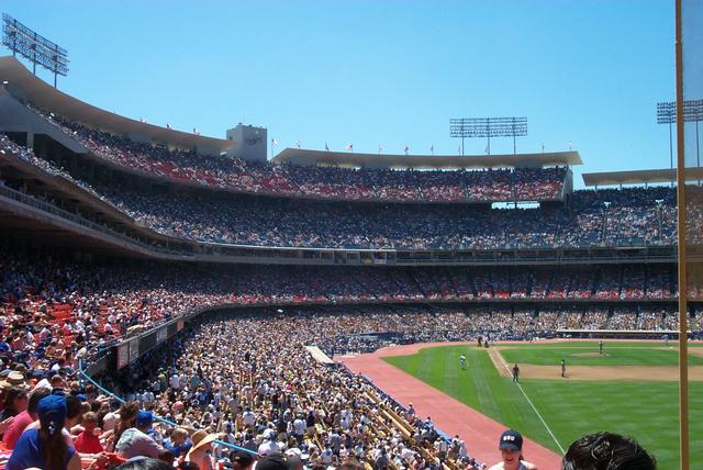 Dodger Stadium is definately an older ballpark. It's still a nice park though. Surrounded by Elysium Park the drive up to the park is very nice. There are lots of palm trees and green grass all around the area.