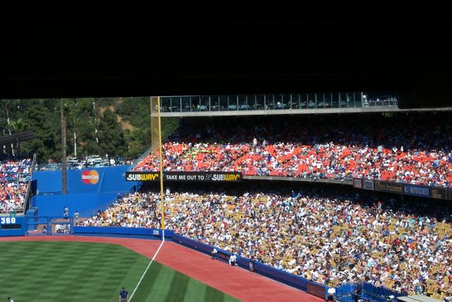 We left a little over an hour early to get to the Dodger game. We probably should have left about two hours early. That's not to say we got to the game an hour late, but the traffic going up I-5 was awful. We did make it to the game during the middle of the third inning.