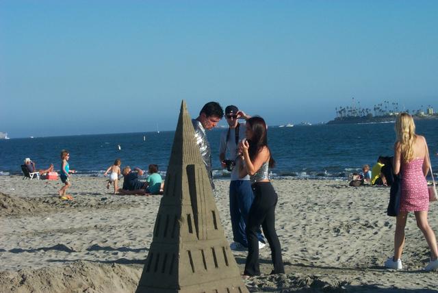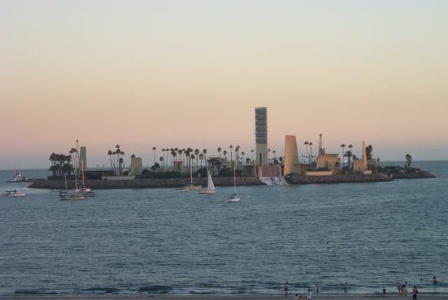 We couldn't find a place to rent bikes so we didn't do that. The beach was very sparsely populated, and it's very near a huge number of shipyards. The water doesn't look as nice as it did in Manhattan (or Hermosa) or Venice. It's kind of brown and dirty looking.