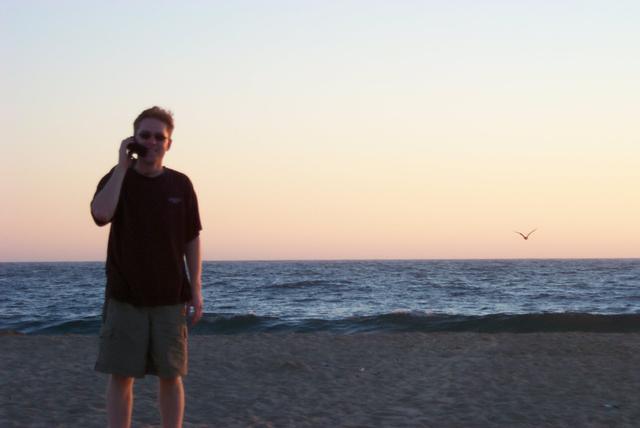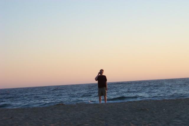 Well, I thought the sand was hot.. at least during the time of day, when we first arrived. We got there, and Seth proceeded to lay out. I went out on a quest to find a volleyball game, as the beach was just littered with posts and volleyball nets. The first group I tried to invite myself into decided they were done playing, but I managed to hit the ball around a little with a second group. I then walked up the pier (I think a picture of it is here) in hopes of getting a frisbee, but didn't find any.