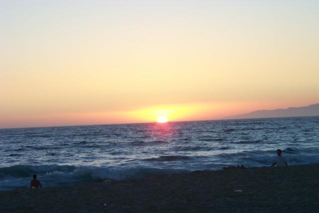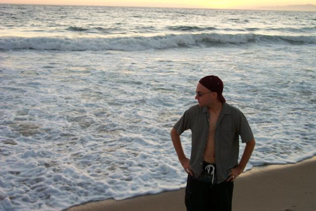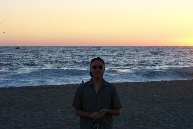 On the way over, I picked up some new trunks (cargo) and a beach towel (Seth got one too). We then stopped over for lunch at the In-n-out burger. I didn't know it was drive through only, but it is. Not too bad eating, maybe a step up from burger street. We then drove towards the the coast, and went through Hawthorne, where one of my company's (Northrop Grumman) plants is located at (we didn't stop).