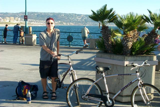 After about 3 hours of sunning bliss we decided to rent some bikes and go down the coast. We started off at the Manhattan Beach pier and took off (southbound) down the coast. We went through Hermosa Beach and then on into Redondo Beach. The paths along the beach are phenomenal. They have two lanes and two seperate roads. One road for running and walking, the other for bikes and in-line skaters. The paths extend along the entire coast as far as I can see.