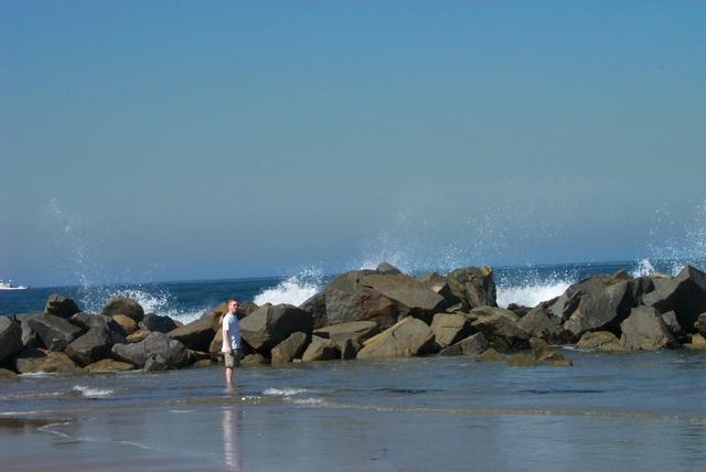At first glance it looks like Venice Beach is a very narrow beach. You have to walk up it a little way to see that it's really an extremely wide beach. There's a neat spot where the water crashes into the rocks and makes gigantic splashes. Here's some pictures from that.