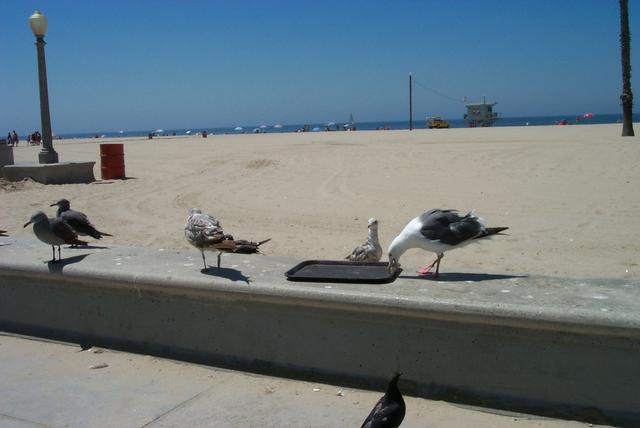 On the walk back to Venice we stopped to eat at a pizzeria and we sat next to the beach. Art decided it would be a great idea to feed the birds. This next picture doesn't do the scene justice. There must have been twenty birds by the time Art ran out of croutons.